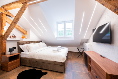 Deluxe Double Studio je površine oko 20 m² i pogodan je za smeštaj 2 osobe. Sastoji se od spavaćeg dela sa bračnim krevetom dimenzija 160 × 200 cm i kupatila opremljenog tuš kabinom. Tu su ketler, čaše i šolje. Gostima su obezbeđeni i peškiri, fen za kosu, besplatan Wi-Fi i Smart SAT TV. Dobrodošli!