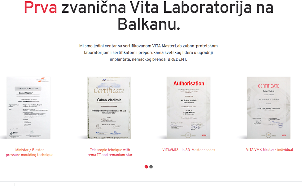 • Posedovanju sertifikovane VITA MasterLab protetsku laboratoriju
