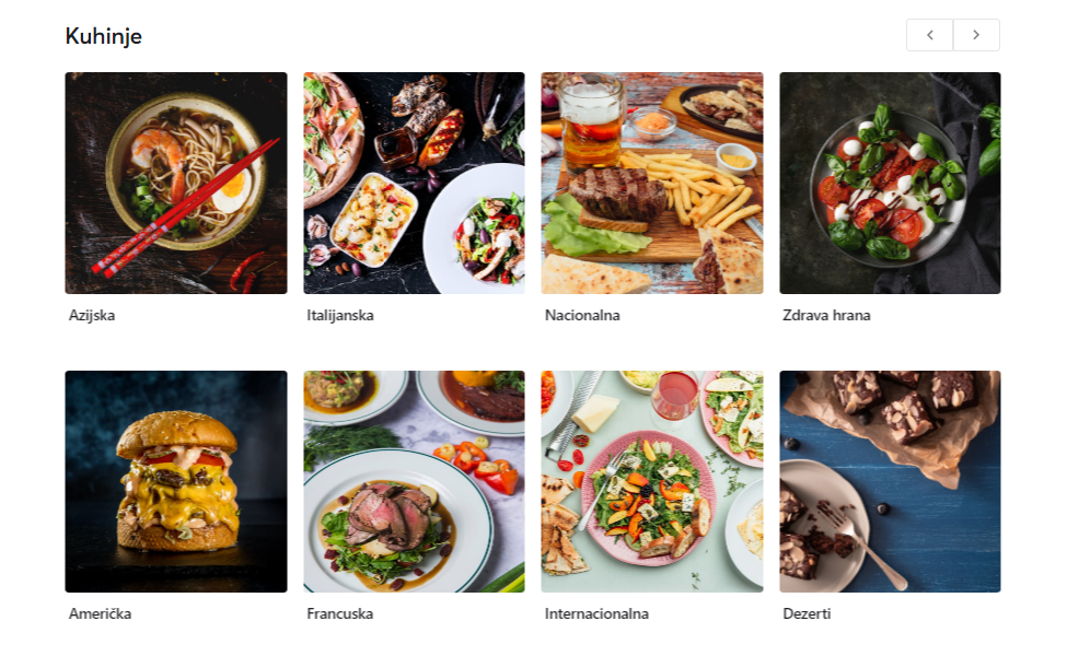 Restorane možete pretraživati u zavisnosti od kuhinje koju biste trenutno probali ili u odnosu na kategoriju jela za koje ste se odlučili. Pretraga je više nego jednostavna, a poručeno jelo će na Vašem stolu biti ranije nego što ste očekivali!