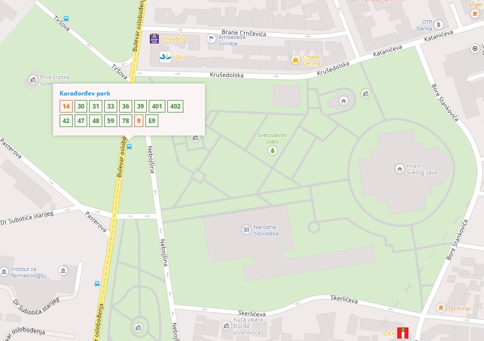 • linija 42 Slavija /Birčaninova/ - Banjica /VMA/ - Petlovo brdo