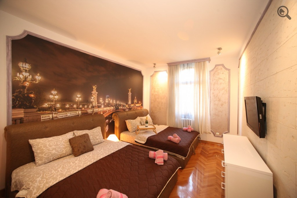 Talija je luksuzno uređen apartman koji se nalazi u samom srcu Beograda- u Čika Ljubinoj ulici! Dakle, ukoliko se odlučite za boravak u ovom savršeno uređenom apartmanu, bićete na svega par koraka od epicentra svih dešavanja u Beogradu. Tu je Trg Republike, boemska četvrt Skadarlija, kao i Knez Mihailova ulica u kojoj se nalazi veliki broj popularnih beogradskih restorana i klubova. Najbolje od svega je što u apartmanu Talija može boraviti do 6 osoba, jer je veoma komforan i funkcionalan! Lokacijski je idealno povezan sa svim delovima grada, tako da, ako je vaš izbor za Novogodišnju noć neki od lokala na Novom Beogradu, možete stići gradskim prevozom sa Zelenog venca ili taxi prevozom koji prevozi tokom cele noći.