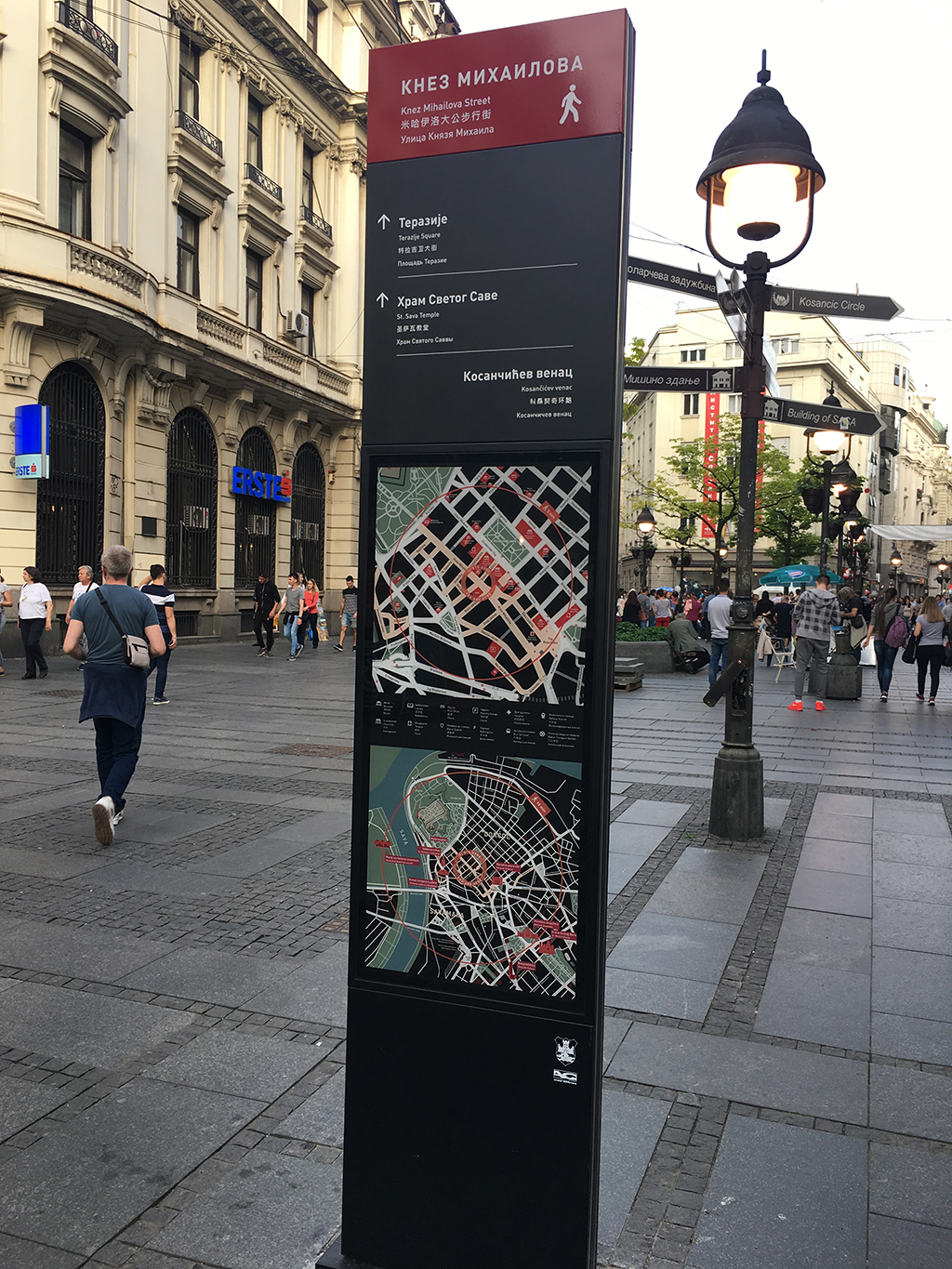 Info table sa potrebnim informacijama se nalaze u Knez Mihailovoj ulici, na Slaviji, Terazijama, u Kralja Milana, kao i drugim centralnim ulicama u gradu. Očekuje se da ih do kraja godine bude ukupno 150. Table su tu kao deo informisanja pešaka, pa su i postavljene po pešačkim zonama po gradu. Možete ih uočiti na svim značajnim raskrsnicama u gradu, gde ćete dobiti informaciju dokle možete stići za pet odnosno petnaest minuta hoda.